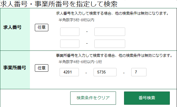 を入力し、「番号検索」ボタンをクリック